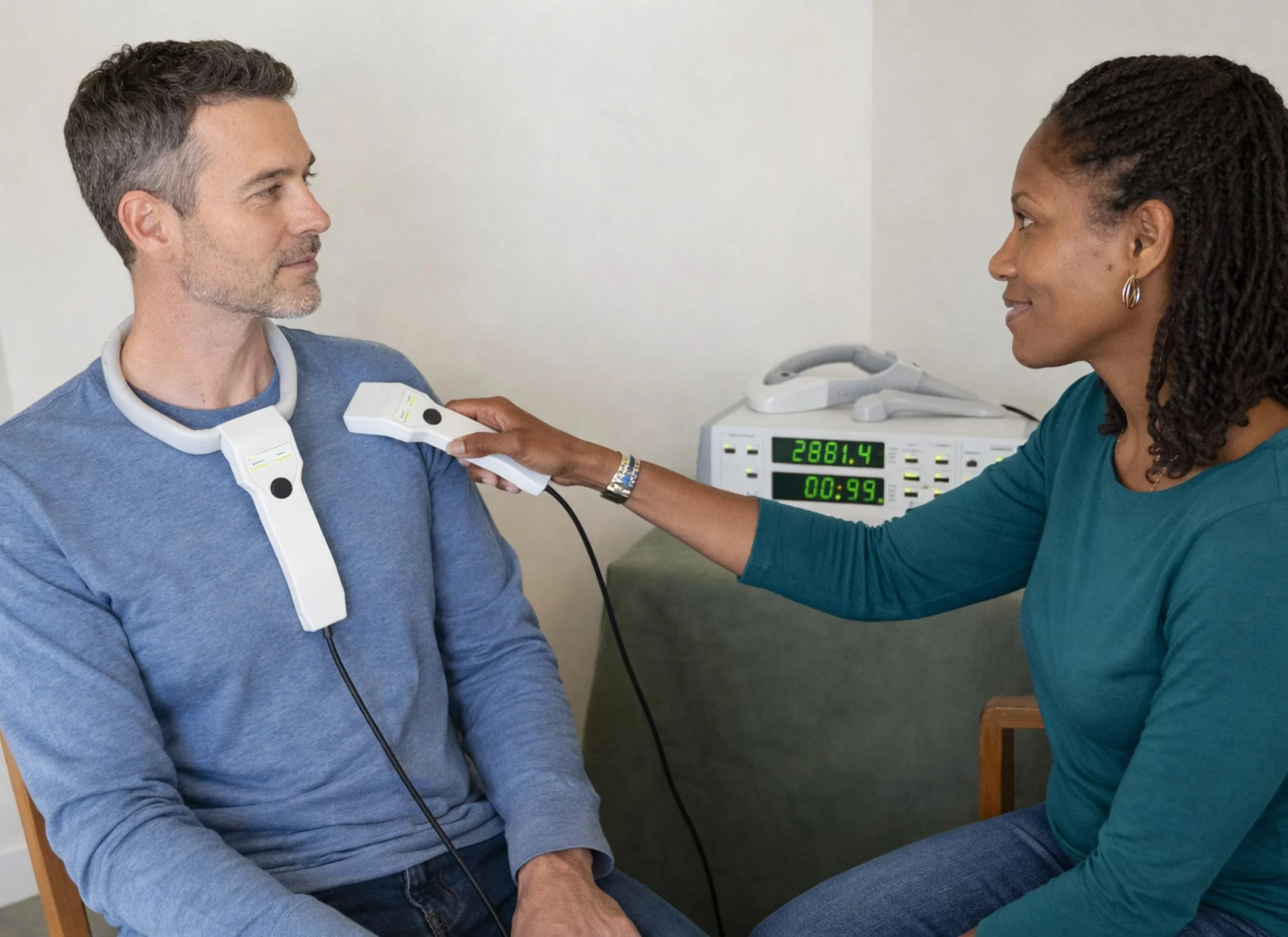 Feedback from pulse rate, SpO₂ levels, and practitioner vascular assessment guides frequency selection and applicator placement, allowing sessions to be individualized.